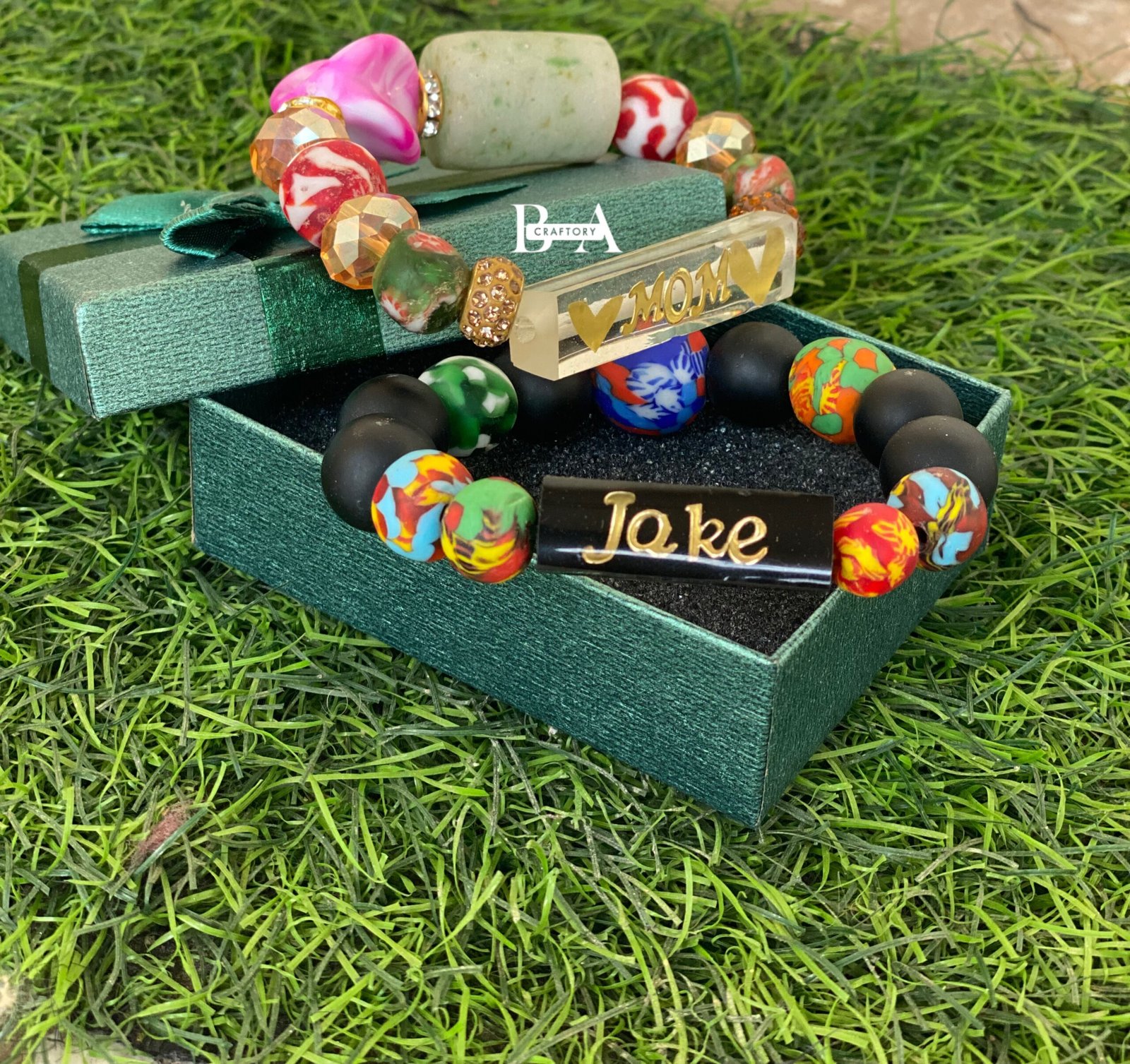 - Customization: Please provide the name, date, or meaningful word for personalization on the rubberized detail, along with your preferred color for the text and bead blend.
